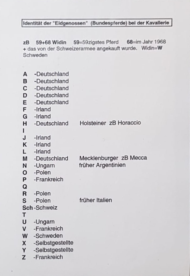 die Schweizer Kavallerie Schwadron 1972 geniessen, hierzu einige